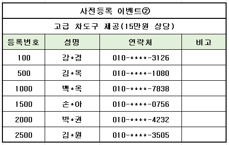 - 경품 수령 방법 :  당첨자님들의 주소를 알려주시면 택배로 보내 드립니다.